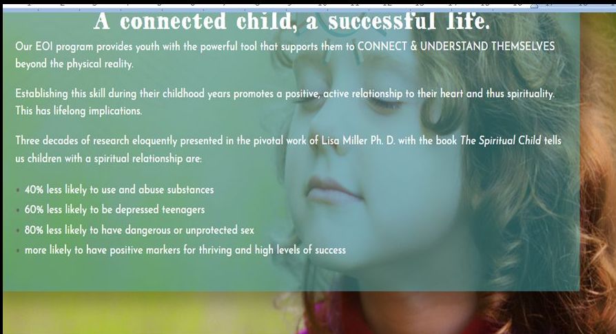 EOV teaches children how to use their own life force energy, their mind and their Spirit in ways that they would never learn in school.